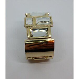 Vintage gold tone crystal like statement cuff bracelet with side hinge for easy wear.