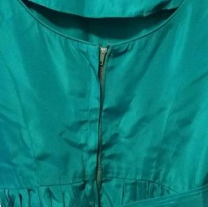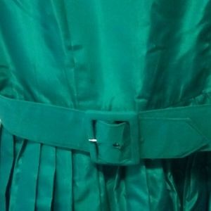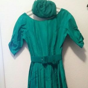 Vintage green taffeta dress..has a seam opening.this piece is 55 years old but awesome..I'd have a seamstress redo neckine.has a tiny hole on right side..purse has vintage irradescent jeweled closures.belt loop needs to be seen back in..rare find