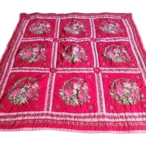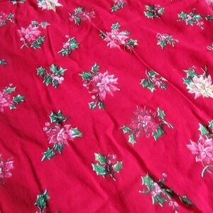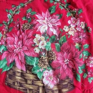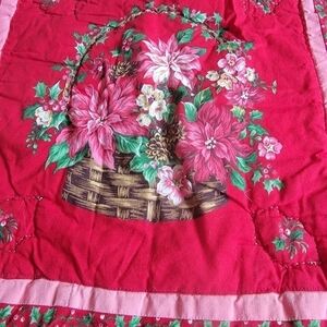 Excellent condition reversible lap quilt. Features poinsettias and holly berries. Great for anytime but especially for Christmas decor.