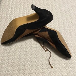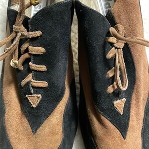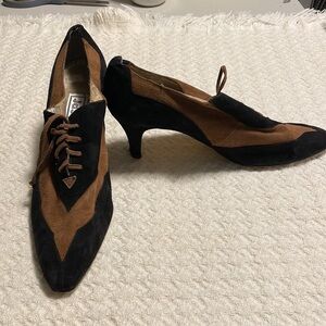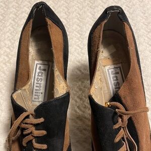 VINTAGE jasmine black/Brown suede cut design on semi pointed toe- laced heels