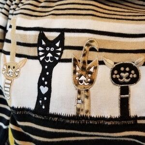 Vintage Unique Terazzo kitty Cat Cardigan. Embroidered cat embellishment on front and back of sweater. Button up front.