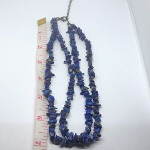 Vintage double strand lapis chips necklace with sterling clasp extension chain. Silver is not polished i do not polish silver.