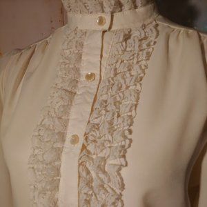 VINTAGE lightweight button lace ruffle long sleeve blouse/approx size M/cream