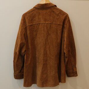 VINTAGE lord taylor suede leather shirt jacket button tan L western equestrian