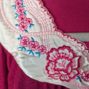 Cannot read the label but appears to be made of acrylic. Measures 23" pit to pit and 42" long. This is a very vintage nightgown and will scream that 80s vibe. From a smoke free home.