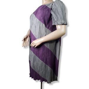 VINTAGE purple and silver gray Stripped Crinkled Dress