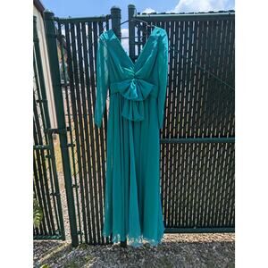 VINTAGE shimmery iridescent blue &; green bridesmaid style maxi dress size 10