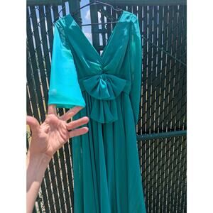VINTAGE shimmery iridescent blue &; green bridesmaid style maxi dress size 10 by Mollie Parnis of New York sold by Isabel Gerhart boutique of Houston silk chiffon dress cocktail bridesmaid wedding guest gala prom homecoming 1970s 1960s aesthetic dinner date dancing reunion anniversary party retro elegant Vintage designer ::see photos for measurements ethereal fairy goddess Renaissance Faire Ren faire