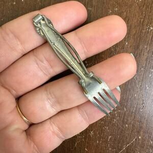 VINTAGE silver tone Silverware Fork Tie Bar Clip