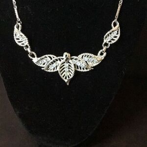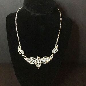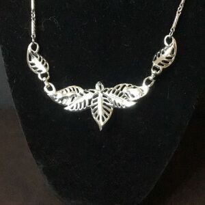 VINTAGE silver tone necklace of foliage design and unique chain link design