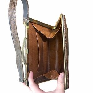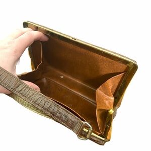 This is a wonderful vintage mini bag. It is unbranded but has a gorgeous faux snake skin leather print. It has an accordion style opening with beautiful hardware.