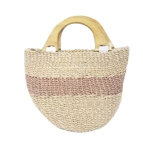 Vintage weaved bag with wooden handles, fully lined. Y2K. Cute beachy vibes