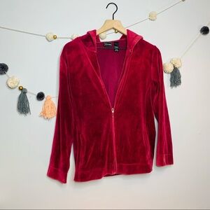VINTAGE y2k preppy maroon velour sweatshirt zip up hoodie