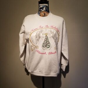 VINTAGE 1995 HANES CREWNECK SWEATER MEDIUM HOME FOR THE HOLIDAYS