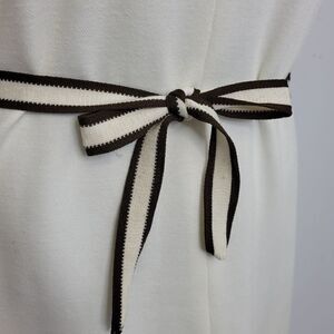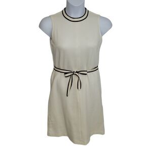VINTAGE 60s cream sleeveless knit shift dress with tie belt M