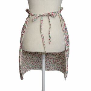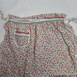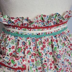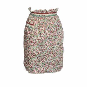 VINTAGE 60s floral print tie waist half apron with pocket and ruffle OS