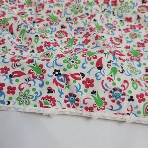 Vtg 1960s tie waist half apron with floral print and pocket. There is some wear at the hem shown in photos. Ruffle at the waist.
