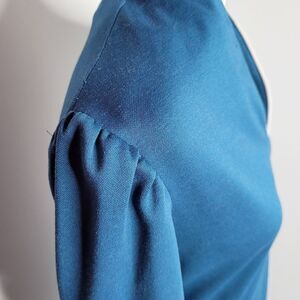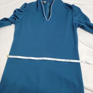 VINTAGE 70s dress teal v-neck long sleeve midi house M