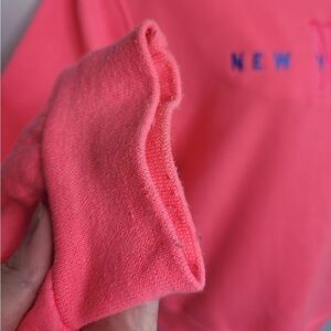 Vtg 1990s New York City florescent pink barbiecore embroidered crew neck sweatshirt top. No size or materials tags, please refer to measurements. Some mild wash wear shown in photos.
