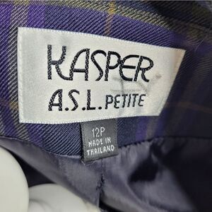 Vintage Kasper ASL petite 1990s wool blend tartan plaid button up blazer coat with shoulder pads. Great for a throwback look for the office. Marked a 12P, fits like a medium, please refer to measurements. Oversized blazer.