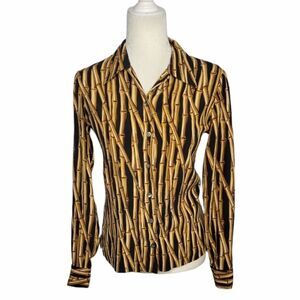 VINTAGE 90s blouse black button up bamboo print silk top size 6