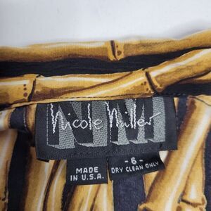 Vtg 1990s Nicole Miller silk button up bamboo print shirt. Great for the office or going out. Two small flaws shown in photo. Very unique.