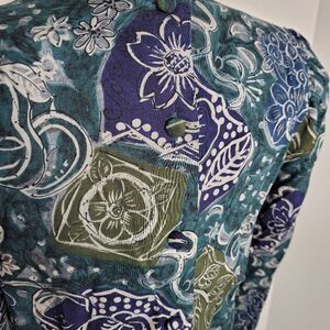 Vtg 1990s Karin Stevens long sleeve floral and velvet two piece maxi dress. Shoulder pads and the top part buttons up the back. There is discoloration on the INSIDE of the dress that can't be seen when worn. There are 2 small holes on the shoulder near the color. Approximately 49" long that can be ankle or higher depending on your height. Vintage size 6, please refer to measurements. Rayon acetate.