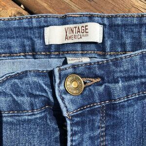 VINTAGE AMERICA Wonderland Slim Straight Jeans in a size 35. 4 pockets and a zipper single button clasp.
