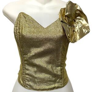 VINTAGE Anne Bancroft-Hylton Gold Metallic Strapless Top L
