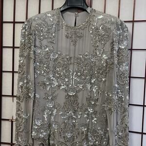 VINTAGE BEADED CHIFFON EMBLISHED WEDDING, PARTY PROM DRESS SIZE BY MEASUREMENTS