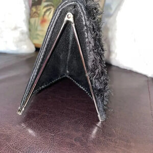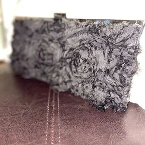 Up your evening bag game with this beautiful black 3D floral/ satin with silver frame clutch.