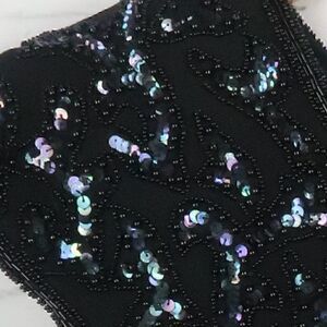 VINTAGE BLACK SEQUIN AND BEADED CAP SLEEVE V NECK GOWN UNIQUE HEMLINE