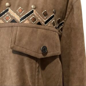 VINTAGE BOB MACKIE Brown Western Button Down Shirt Jacket Brown Faux Suede L