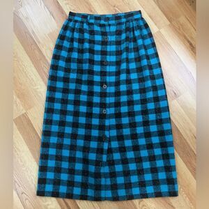 Vintage Blue Black Plaid Button Front Midi Skirt