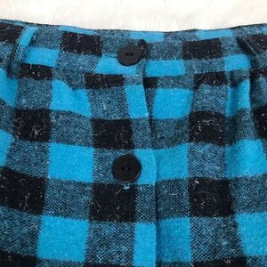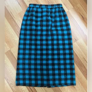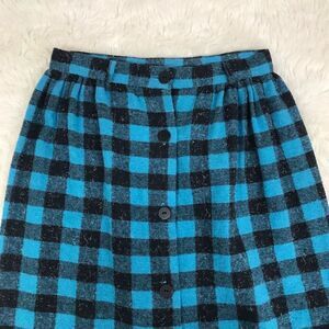 VINTAGE Blue Buffalo Plaid Button Front Midi Skirt Wool Blend 70s 80s Size 2