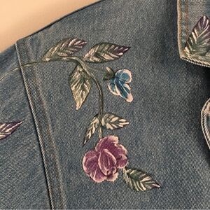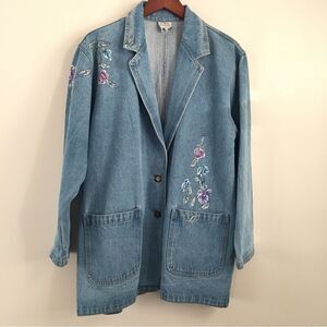 VINTAGE CMC Oversized Denim Blazer with Floral Designs | Size Large
