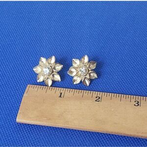 Goldtone 3D Flowers with crystal centers.