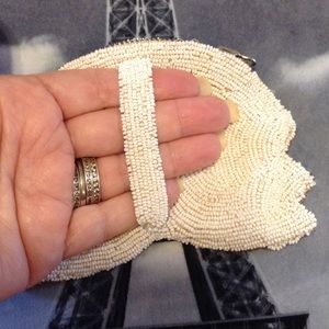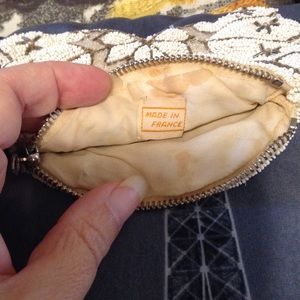 OH LA LA! Purchased in Paris! This VINTAGE Heavily Beaded Bag is Perfect for your Wedding! Your Something Old! 100's of White, Bronze, and Iridescent Beads in a Beautiful Fan Pattern. Zippered Top, Hand Strap on Back. Silk Lining. Made in France! 🌸PRICE IS FIRM🌸