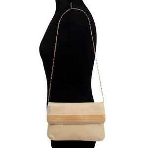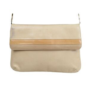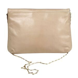 VINTAGE I SANTI MADE IN ITALY CREAM BEIGE LEATHER FLAP CLUTCH SHOULDER BAG PURSE