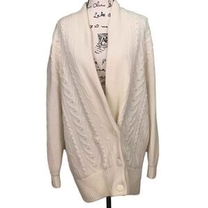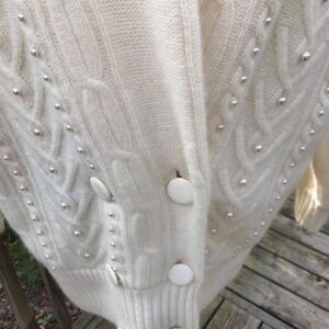 Vintage Ivory Wool Sweater with Pearls, Size M: Lamb’s Wool, Angora Rabbit Hair, Nylon