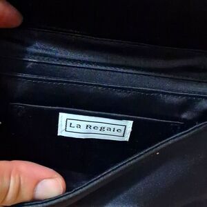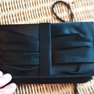 💫💫💫VINTAGE LA REGALE BLACK SMALL SATINY CROSSBODY EVENING CLUTCH