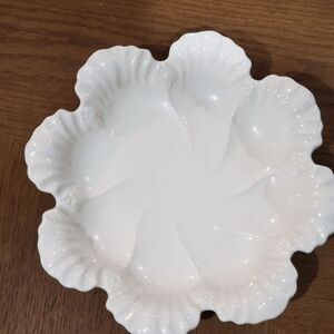 This dish is in excellent condition with no chips or cracks. It is in 10.5". Cabbage Leaf or oyster pattern dish. Ivory in color.