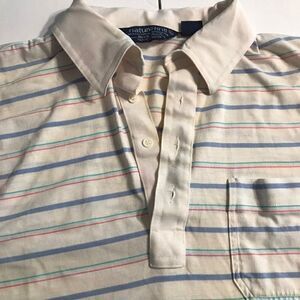 VINTAGE Natural Knit California Vibe Striped Polo Shirt Men Large Pullover. Aa.