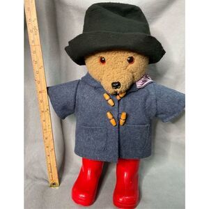 This VINTAGE PADDINGTON TEDDY BEAR XL PLUSH approximately 17" COAT RED BOOTS GREAT BRITAIN