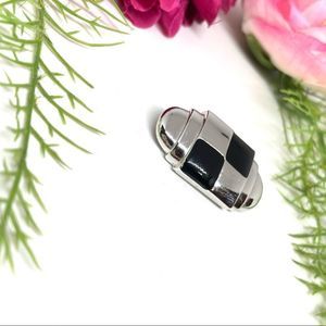 Absolutely Stunning Fabulous Vintage MONET Marked Silver Tone Geometric Brooch/Pin W/ Black Enamel Checkers. So Unique!
