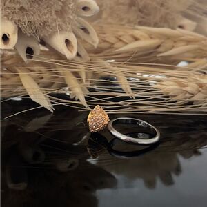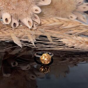 Rose Swarovski ring, the rose is a gold tone and the ring band is a silver