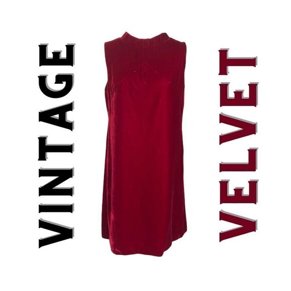 VINTAGE Red Velvet Sleeveless Shift Dress - Sz 8-10 WOW 🤩