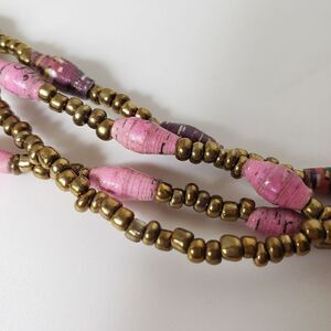 Bronze seed beads and Pink Paper Beads
