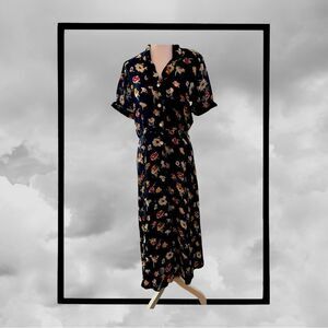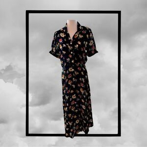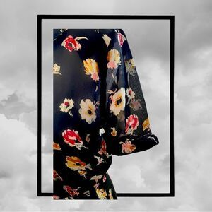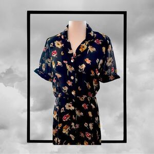 VINTAGE SHERI MARTIN BLACK SHEER DARK FLORAL DRESS