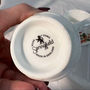 VINTAGE SPRINGFIELD POINSETTIA FLORAL BONE CHINA HOLIDAY TEACUPS ENGLAND